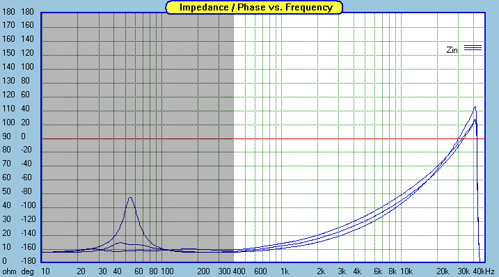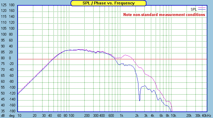 None of the drivers in this system want to do much work in the lower treble, making the midbass seem even louder. This could be considered a full baffle step design, however there is no baffle step compensation built into the crossover - it's all in the woofer's massive inductance. There is really not much problem in the non-linear distortion of the drivers. While not great in that regard, they are acceptable. This system's coloration is primarly in the frequency response. Some of it could also be in enclosure vibration, but I did not break out an accellerometer to prove it.
