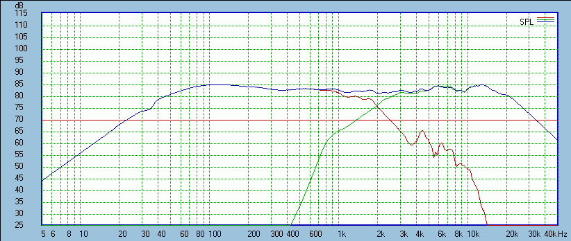 First let's look at the CALSOD results since this is where most of the crossover design was done. This is close to a standard Linkwitz-Riley 4th order acoustic crossover.