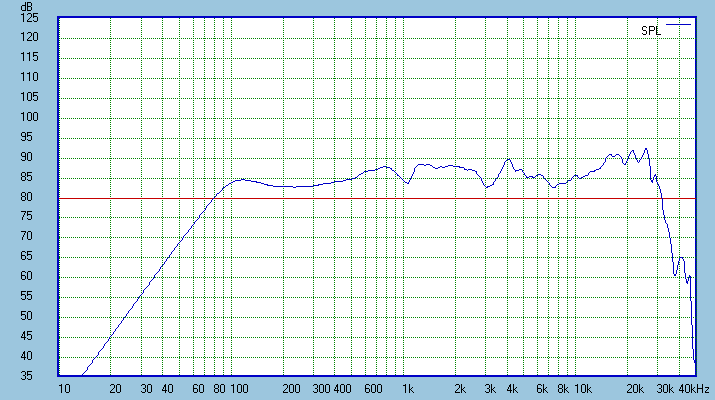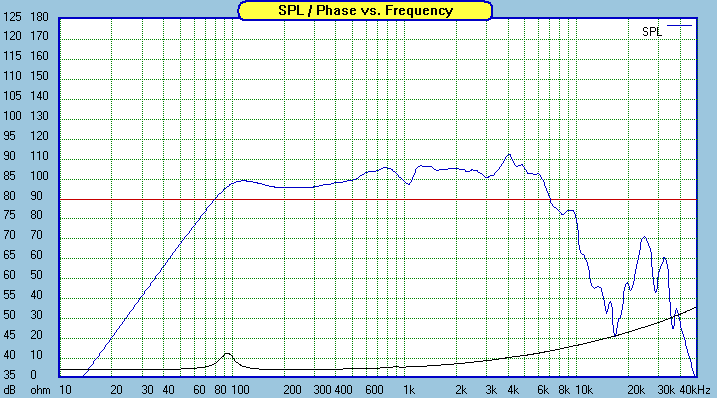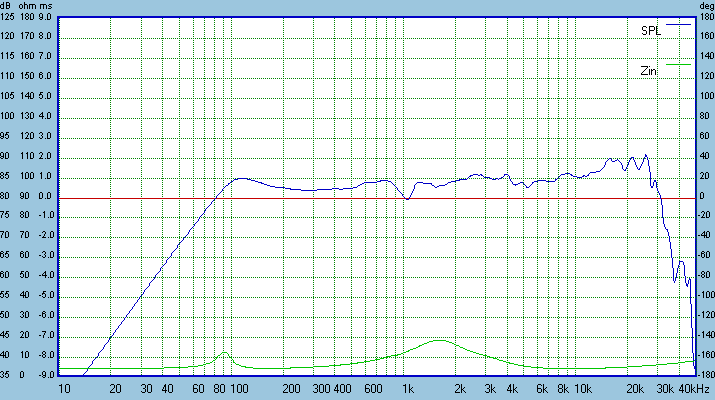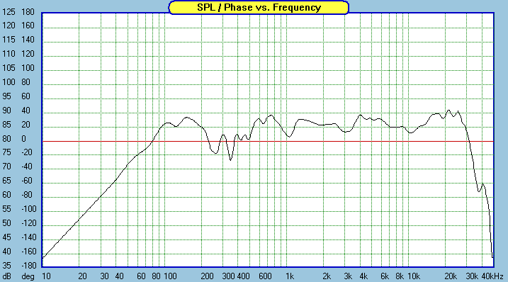 Frequency response is pretty rough, displaying the issues expected of this design: no baffle step compensation causing a forward glare in the mids, peaky high Qtc woofer low end causing some boominess, and an unfiltered breakup node on the woofer showing itself with some music.
