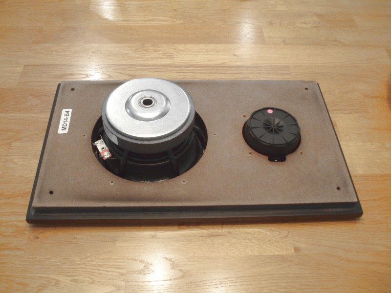 This system was designed specifically for Madisound's MD14 enclosure with the pre-cut baffle. Having offset mirror image baffles would have driven the price up for the pre-cut baffles since two different CNC setups would have been required. Then there's the whole issue of keeping the same number of lefts and rights in stock. You can see why it was wise for Madisound to have centered tweeters. No problem here, we'll design specifically for a centered baffle. Three cheers for the router impaired - this is the only design I've ever posted that can be assembled without a router, thanks to the work Madisound has done.