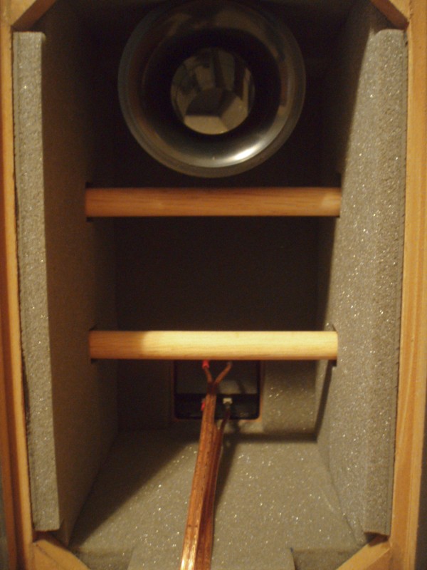 The kit comes with a wad of Acousti-stuf. Mount the crossover on the bottom, and cover it well with some of the stuffing. Additionally, take some of the stuffing and tuck it in between the port and the top of the cabinet. Don't allow any stuffing past the internal port flare.