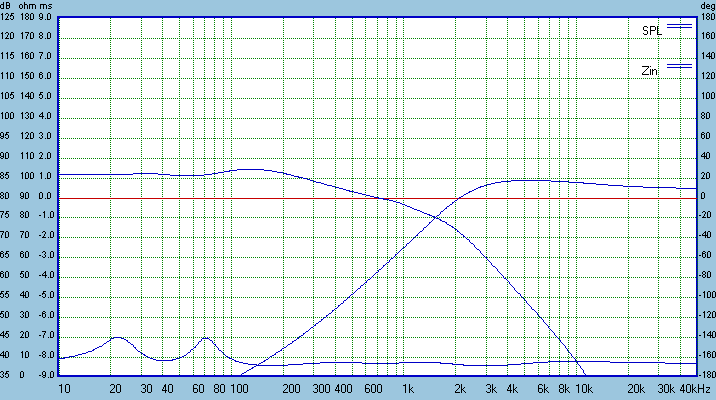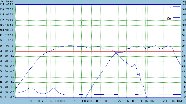 This crossover is asymmetrical 4th order Linkwitz-Riley at 1750 Hz. The slightly steeper tweeter slope along with a slightly shallow woofer slope helps to align the listening axis with the tweeter.