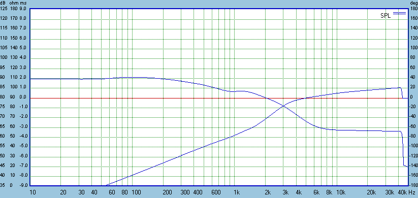 The measured response is always a dose of reality compared to the modeled response. This tells me a couple of notable things. My R22 was slightly out of spec, showing up as a half dB difference at 900hz. More importantly, I didn't screw up or lose any of my phase information. That's the most common error that results in abnormalities in the crossover region. It was particularly important that I get it right with this design since it has an electrical solution to the acoustic center mismatch. Overall, I couldn't ask for a measured response to be any closer to the modeled response.