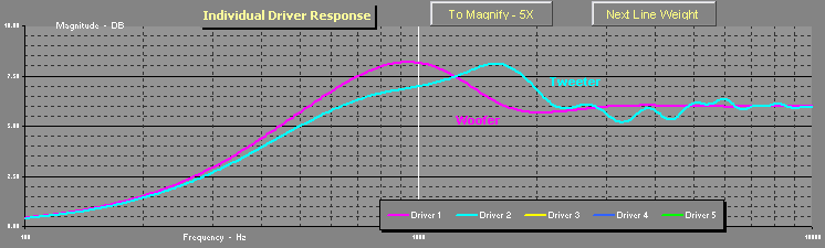 This doesn't represent the best I can do... It represents the point where I stop the design, sit back and enjoy the music. :) The need to tweak some more goes away as the music draws me in. This is a cost effective design with smooth, clean sound. Both of these drivers have very smooth response in their working range and resonably good harmonic distortion numbers. The lower midrange has a certain clarity that comes from the unique characteristics of stiff metal cones in well designed drivers along with a good system design.