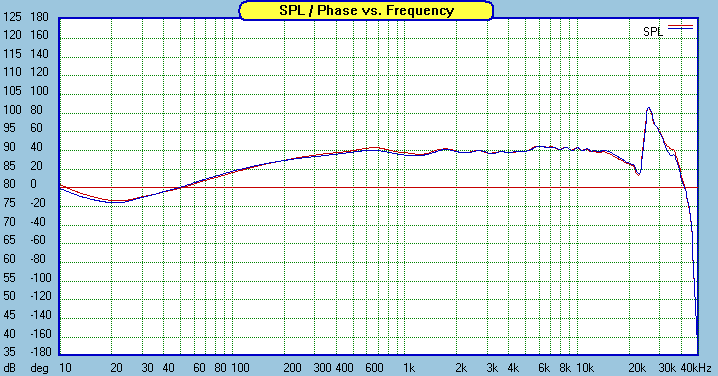 The design listening axis was the tweeter, but the in-phase listening axis came out to be a few inches higher than that at the listening chair. This is ok in my book. Had the listening axis moved downward, I would have had to start over and go to work on matching the acoustic centers. One of my goals for this project was to avoid a woofer on top or slanted baffle layout, so this listening axis works in my favor. In a typical listening position, the best phase matching between woofer and tweeter happens with your ears level with the top of the enclosure, but given the tall vertical window this design provides, it's not going to matter much where you are in the room.