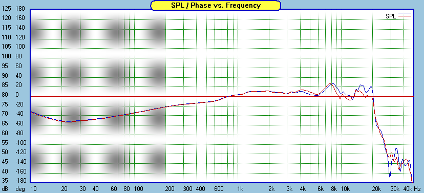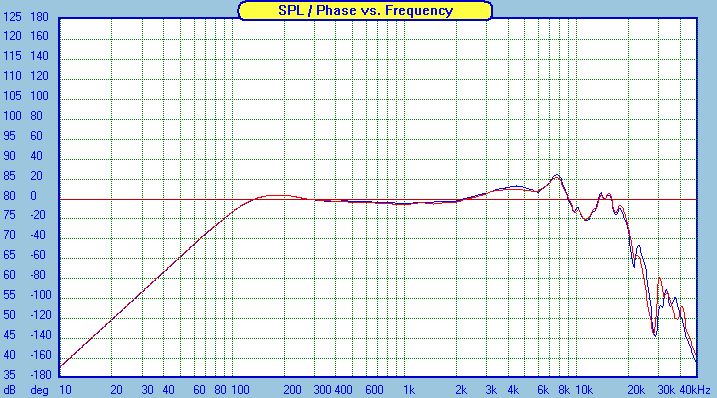 The modeled curve above is the one I made before final tweaking. The measured response curve above is after final tweaking. Note that while the transfer function indicates about 5 dB of baffle step compensation, the midrange and top end are a couple dB higher than the midbass level. This works out just right in all but the largest rooms. The two drivers overlaid on the raw response curve gave me an idea of the consistency between drivers.