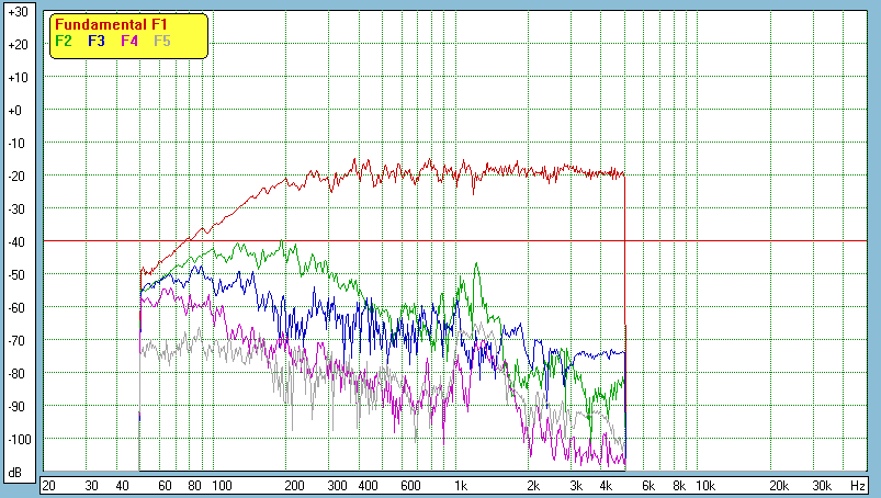 Comments: It's good wide range driver with a few flaws. There are no serious issues in the harmonic distortion and the response is extended. Aside from the metal cone breakup in the top octave, there is a major resonance at 1900 and a minor at 800. Not too bad, but generally outperformed by several other wide range drivers, most for less money. The Alpair's response curve is pretty far off from the manufacturers, which may indicate a consistency issue. Tested March 2009. |